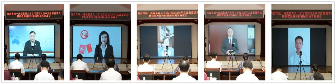 7月14日上午,青岛市举办“青港同行、共享荣光”统一战线各界人士学习国家主席习近平重要讲话暨庆祝香港回归祖国25周年座谈会,隆重庆祝香港回归祖国25周年,深入学习贯彻国家主席习近平在庆祝香港回归祖国25周年大会暨香港特别行政区第六届政府就职典礼上的重要讲话精神。会议以“主会场+线上连线”方式举行,设立香港分会场,在港同乡社团及在青岛工作生活的20多位港人和全市统一战线各界人士近100位嘉宾参加了会议。青岛市委统战部分管日常工作的副部长杨长军出席会议并讲话。